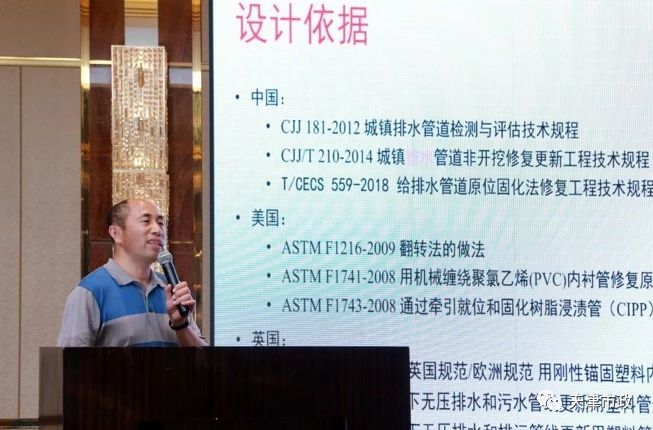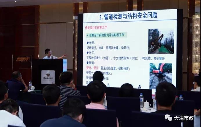 在随后的技术论坛交流环节中,来自中国地质大学(北京)工程技术学院的马孝春副教授和天津市市政工程设计研究院管道检测与修复技术中心吕耀志主任分别做了关于“排水管道修复工程设计”和“排水管道健康检测与评估”的技术报告,报告后大家针对管道检测修复相关技术展开了热烈的讨论。