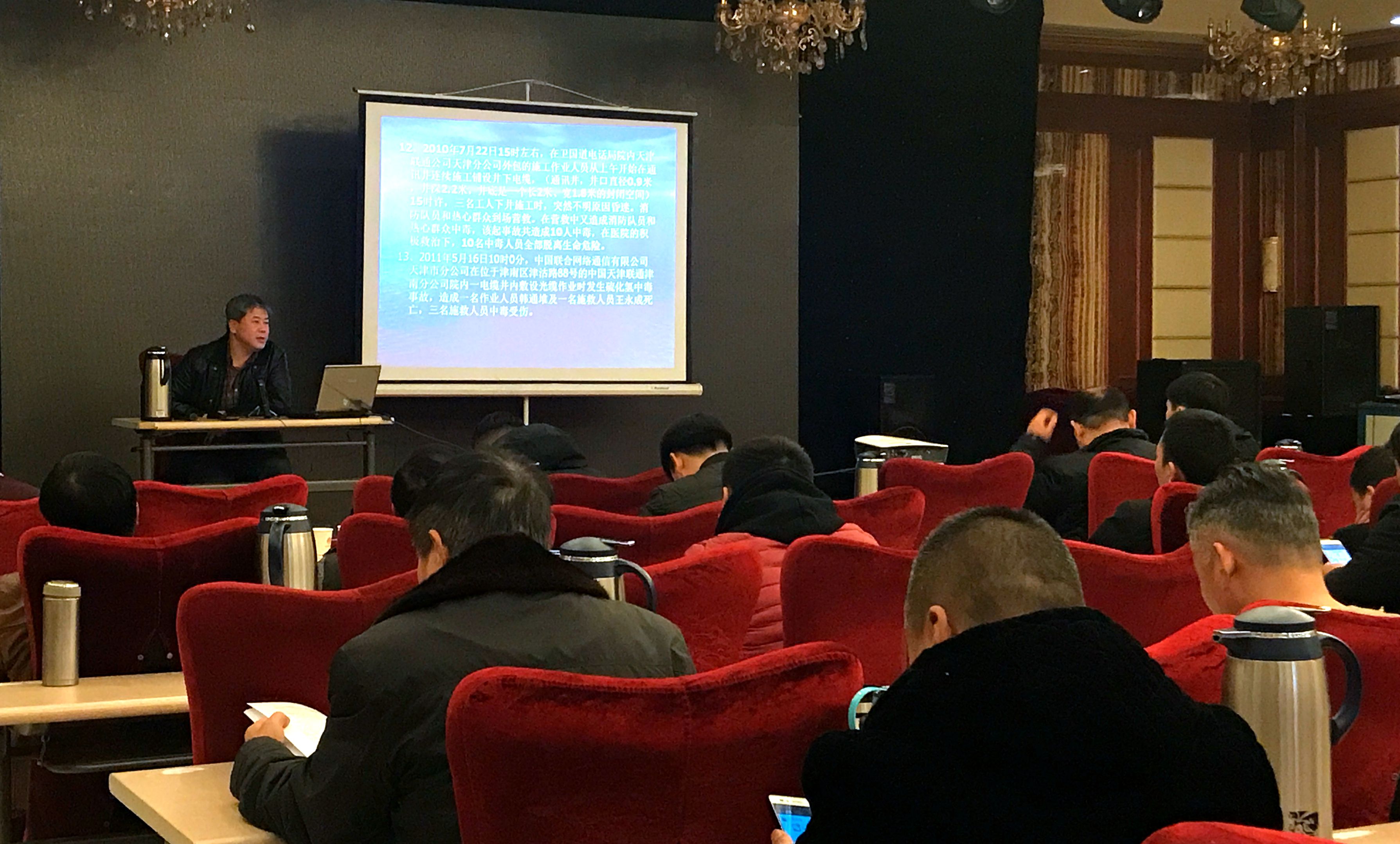 此次邀请天津市排水管理处和天津城建集团的专家为大家进行培训,两位专家分别就排水施工安全管理、预防硫化氢中毒和窒息事故安全教育培训(井下作业部分)、排水工程施工技术及质量验收标准作了详细讲解。